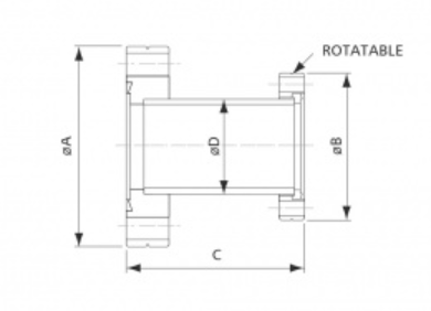 The Reducing Adaptor - Small Flange Rotatable is available in the following sizes: CF35/CF16, CF63/CF16, CF63/CF35, CF100/CF35, CF100/CF63, CF150/CF35, CF150/CF63 and CF150/CF100. \n \nThe Reducing Adaptor - Small Flange Rotatable is made out of Stainless Steel. \n \nThe high sealing and the low leak rate performance of the CF Flange connection is due to the gasket material. \n \nWhen the CF Flange is correctly assembled, the knife edge is compressed onto the flat copper gasket forcing the seal material outwards to the flange. \n \nThe gasket is entirely enclosed and will not edge out even under the highest bakeout temperatures. \n