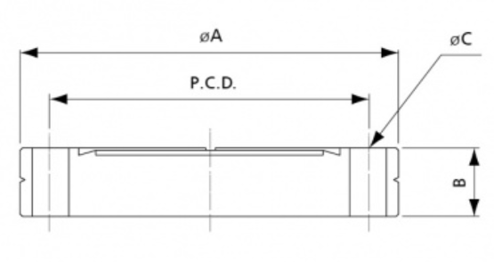 Model No. Size Material A B C*No. Inch spec. P.C.D.