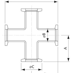 These KF 4-way cross vacuum fittings follow KF standards. They are commonly used to build foreline vacuum plumbing and process systems. They are often called quick flange fittings because they are quick to assemble. A circumferential clamp and centering ring form the vacuum seal between the connecting flanges. The centering ring contains a rubber elastomer o-ring. The standard sizes for quick flange fittings are KF-10, KF-16, KF-25, KF-40, and KF-50. They are made of corrosive-resistant stainless steel. \n