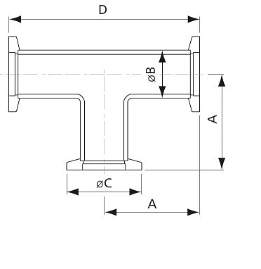 These KF Tee fittings follow KF standards. They are commonly used to build foreline vacuum plumbing and process systems. They are often called quick flange fittings because they are quick to assemble. A circumferential clamp and centering ring form the vacuum seal between the connecting flanges. The centering ring contains a rubber elastomer o-ring. The standard sizes for quick flange fittings are KF-10, KF-16, KF-25, KF-40, and KF-50 with flange sizes NW-10, NW-16, NW-25, NW-40, and NW-50, respectively. They are made of corrosive-resistant stainless steel. \n
